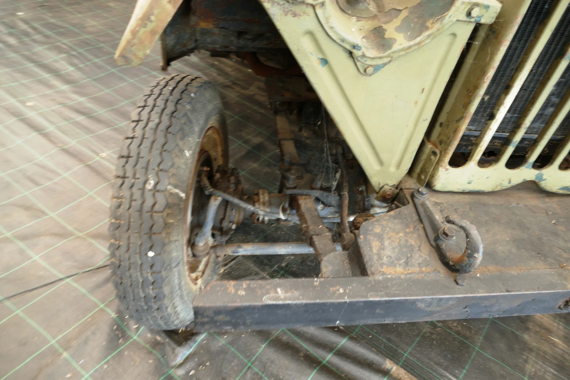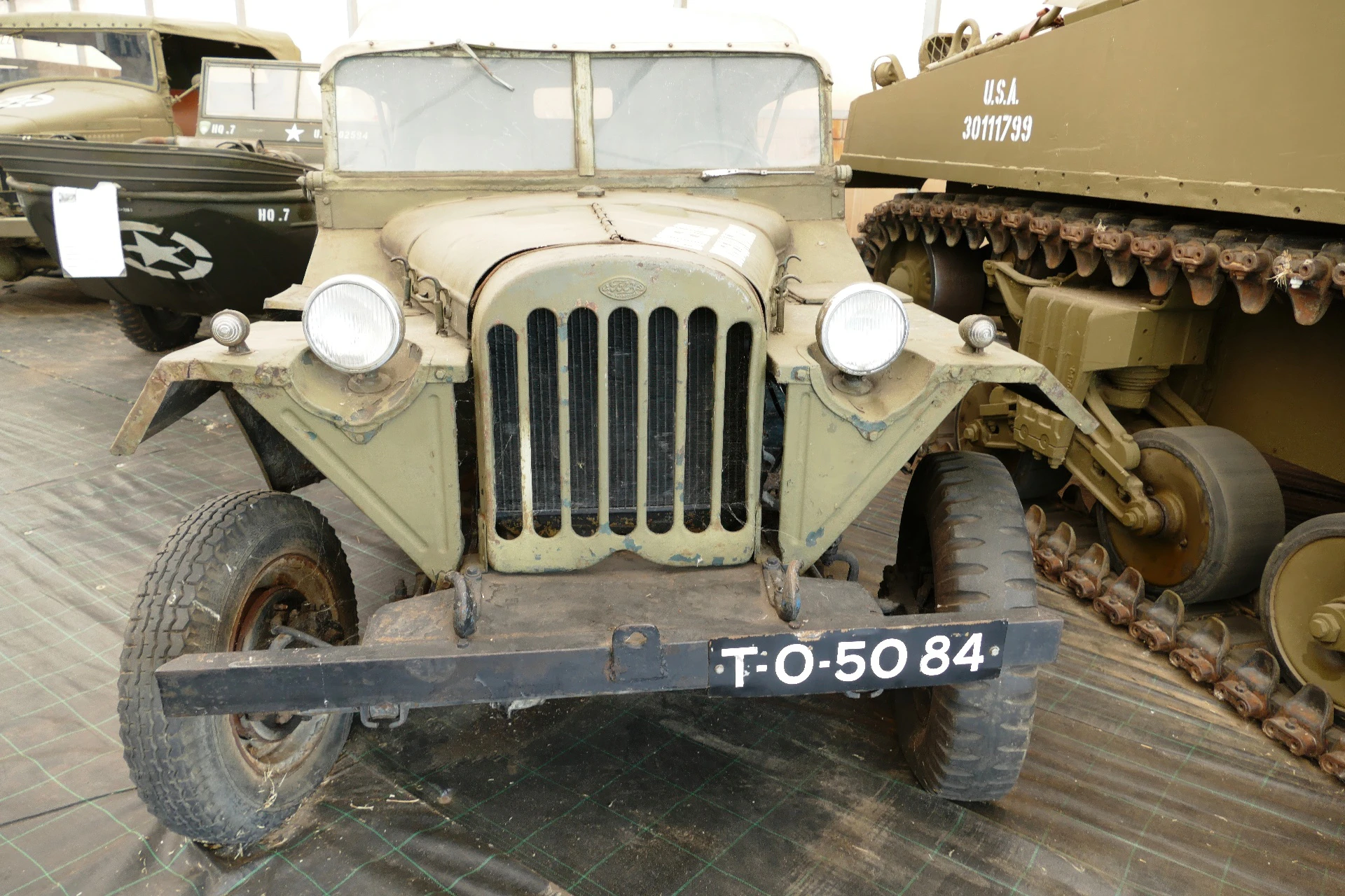 Distinctive Features: The vehicle is easily identified by its lack of doors (or simple canvas doors), large steering wheel, and its characteristic wide, slatted grille.