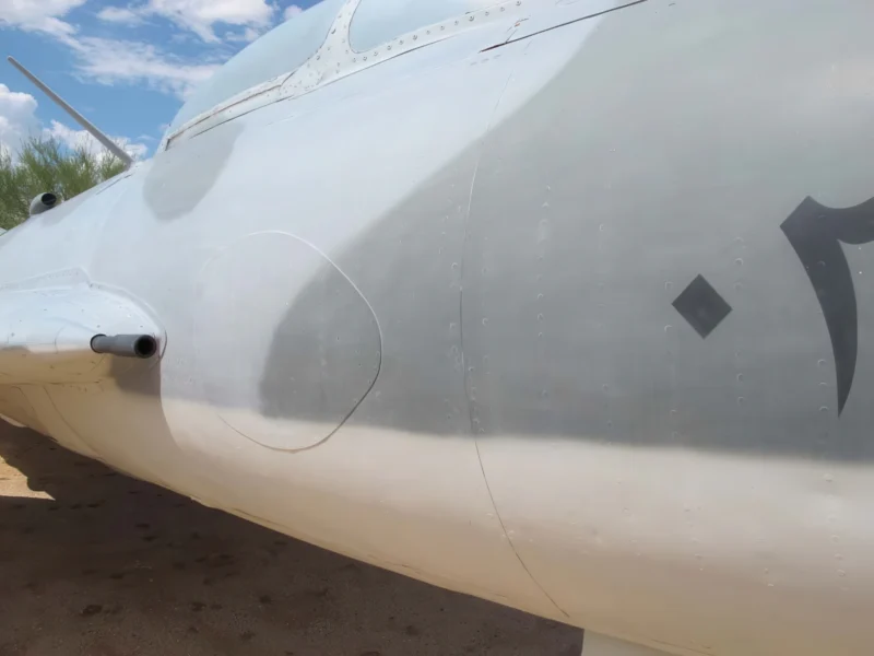 Фото галерия на Миг-19ПФ – Шенян J-6A, The Shenyang J-6 (Chinese: 歼-6; designated F-6 for export versions; NATO Code: Farmer) was the Chinese-built version of the Soviet MiG-19 ‘Farmer’ fighter aircraft. Although the MiG-19 had a comparatively short life in Soviet service, the Chinese came to value its agility, turning performance, and powerful cannon armament, and produced it for their own use between 1958 and 1981. While the basic Soviet-designed MiG-19 has been retired from all nations, the Shenyang J-6 still flies for nine of its original 15 operators, however, in a very limited capacity. The J-6 airframe contributed to the Chinese ground attack version, the Q-5, which still flies for numerous nations. The J-6 was considered “disposable” and was intended to be operated for only 100 flight hours (or approximately 100 sorties) before being overhauled. The Pakistan Air Force was often able to extend this to 130 hours with diligent maintenance.