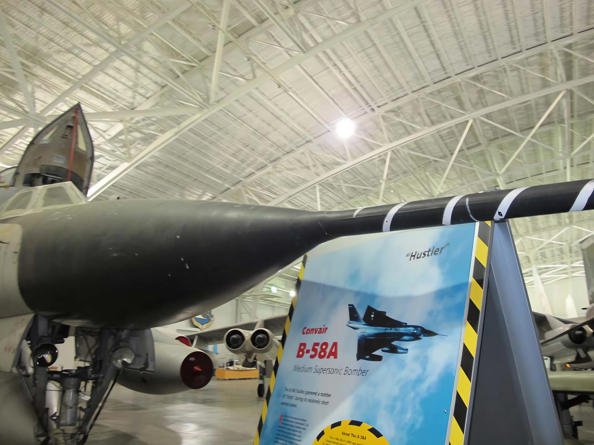 Area Rule “Coke Bottle” Shape:The fuselage was subtly pinched at the waist (the “Area Rule”) to reduce transonic drag, allowing the Hustler to slip through the sound barrier with ease.
