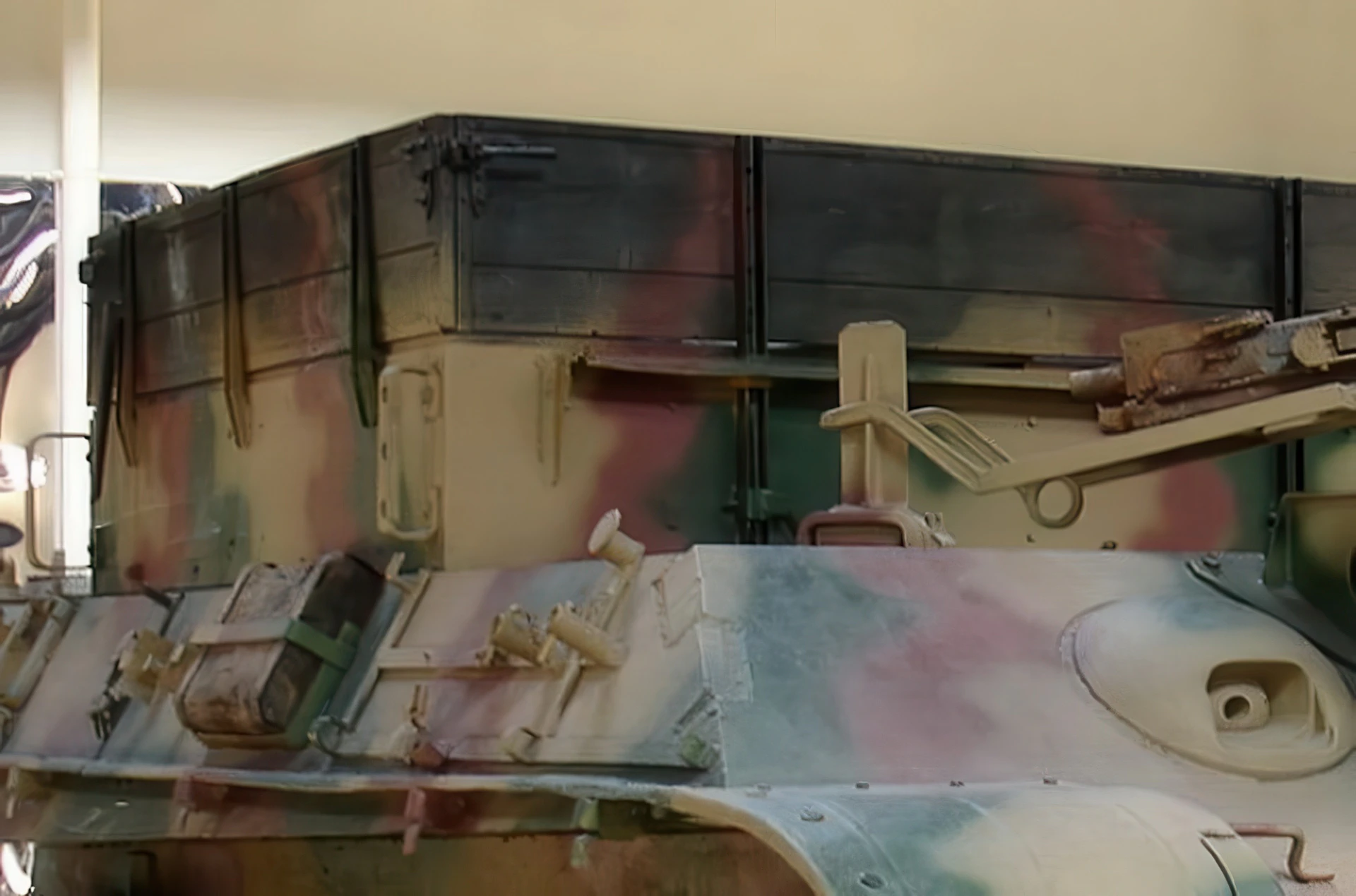- Crane: A small 1.5-tonne capacity jib-boom crane was used for lifting heavy components, such as engines, turrets, or transmissions, during field repairs.