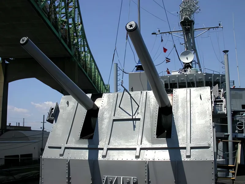 - Original Armament: 6 x 5-inch (127 mm)/38 caliber guns in three twin mounts, torpedo tubes, and anti-submarine hedgehogs.