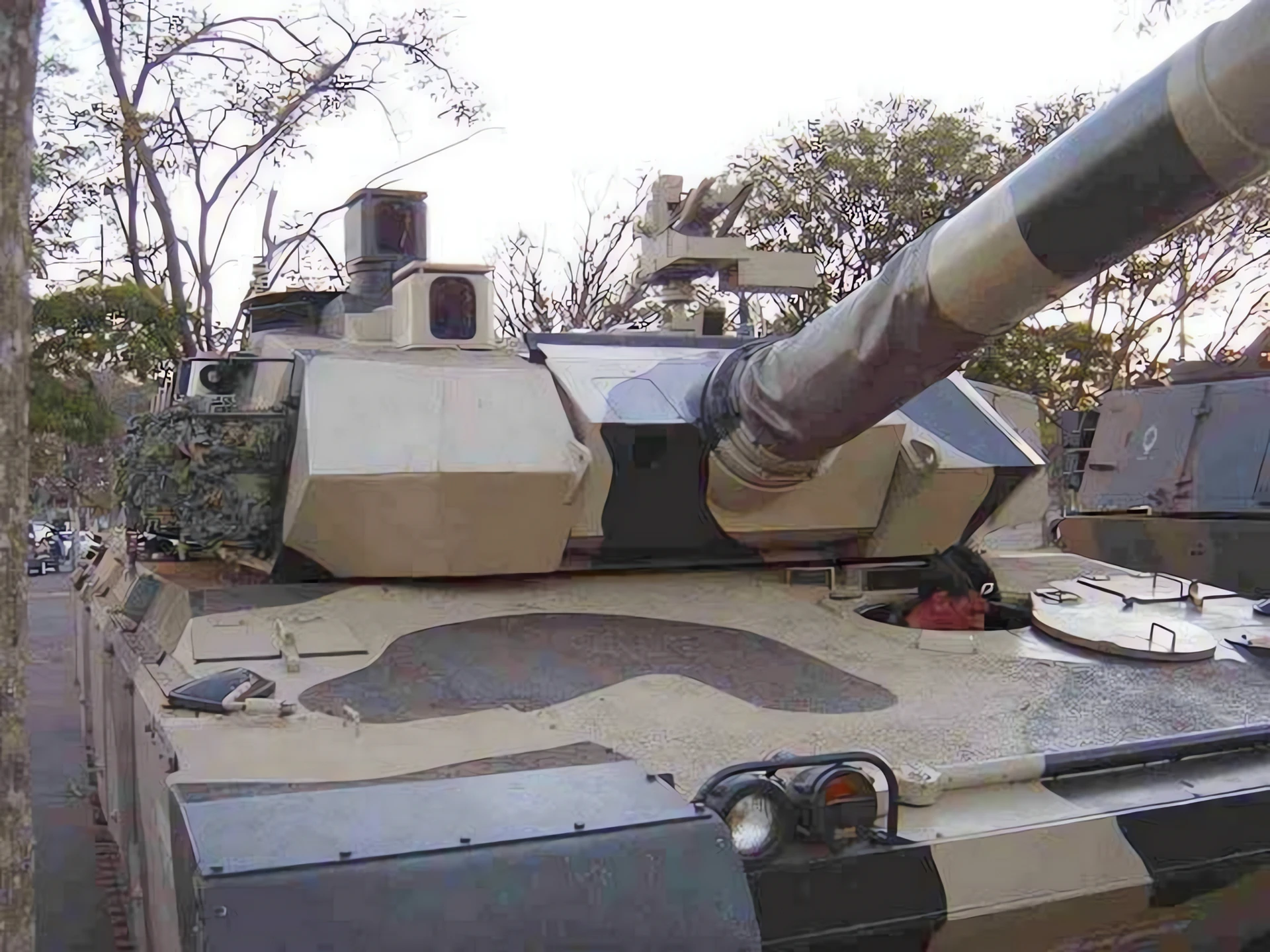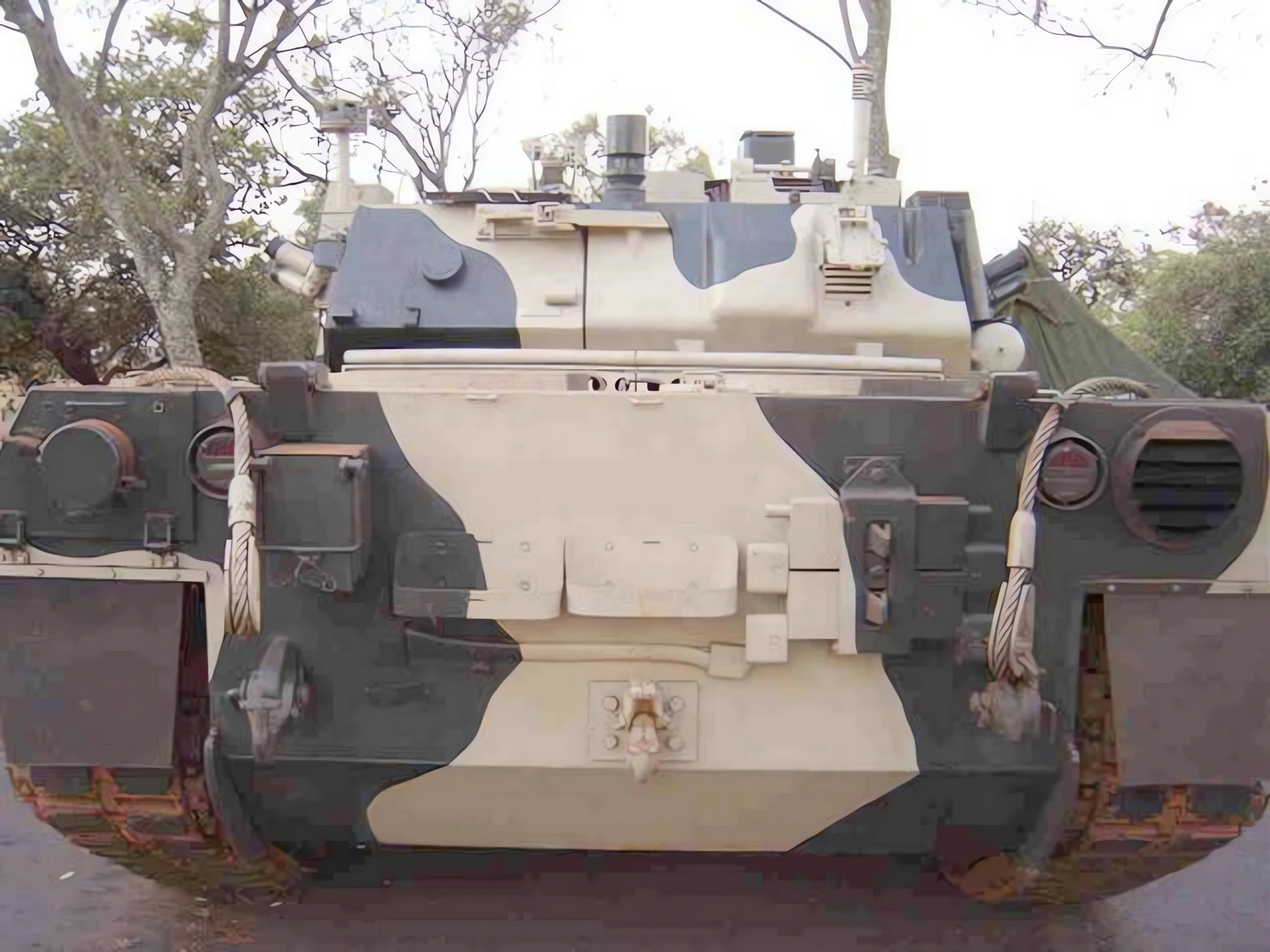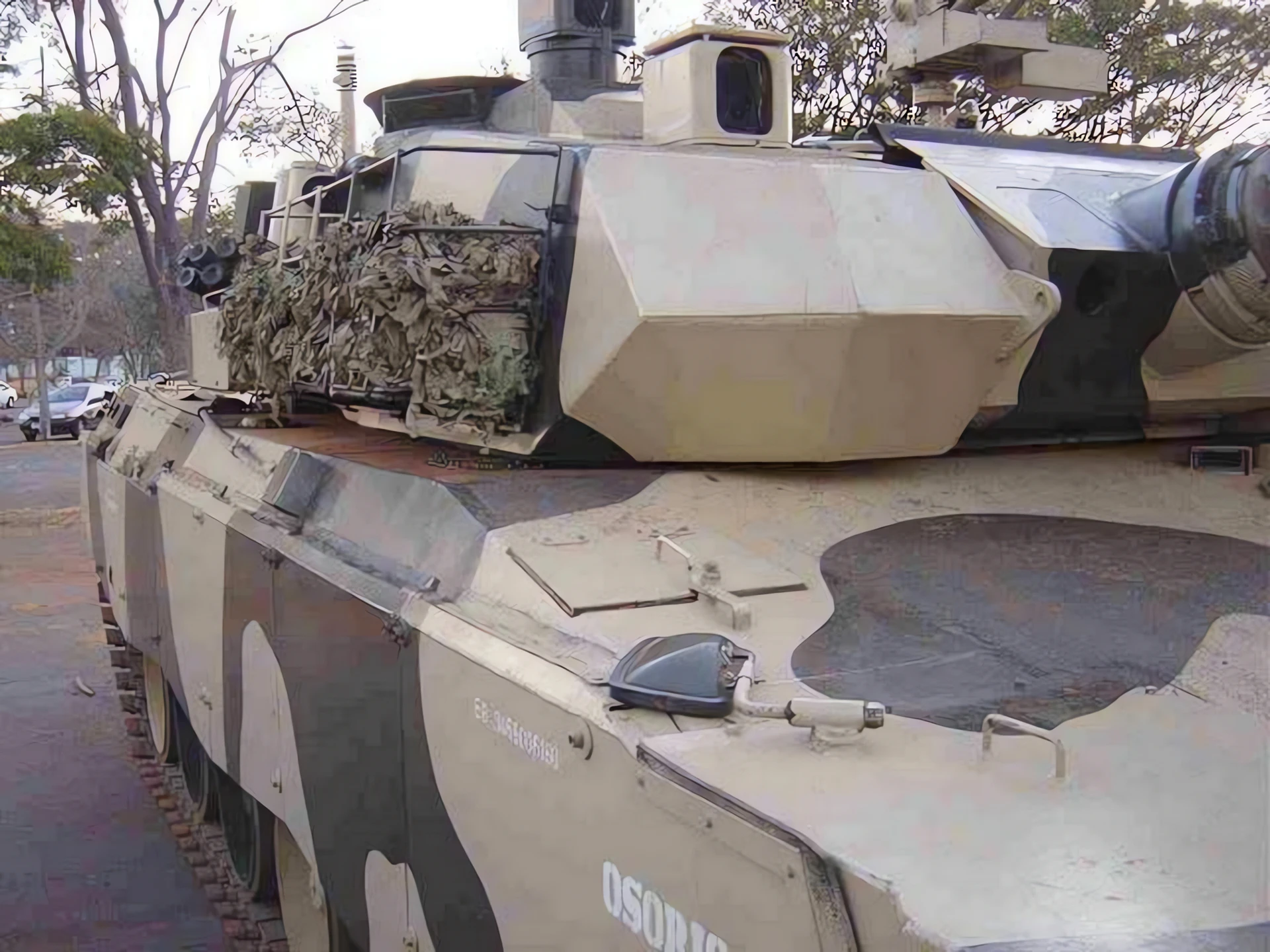 Armor: Modular, multi-layered composite armor developed by Engesa. The design utilized aluminum and composite ceramics to offer protection against both kinetic energy (KE) and chemical energy (CE) threats, comparable to contemporary Western MBTs but at a significantly lower weight.