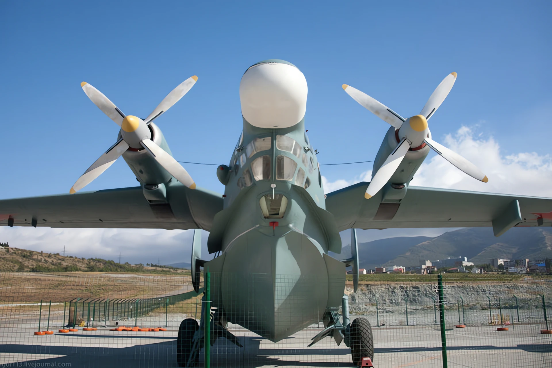 The Gull Wing Design:The sharply cranked “gull” wings were not just for aesthetics; they served to lift the massive turboprop engines and propellers high above the water’s surface, protecting them from corrosive salt spray and wave impact during takeoff. [Image detail of the Be-12’s cranked wing root and engine placement]