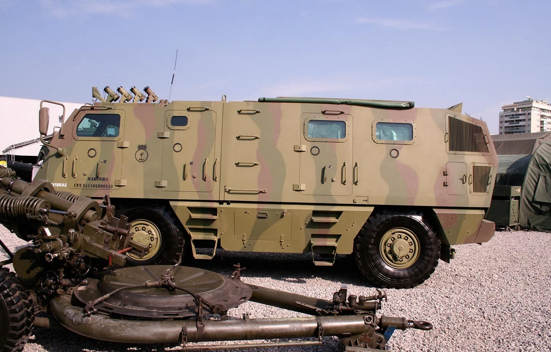 The Avibras ASTROS II is a Brazilian-made, self-propelled Multiple Launch Rocket System (MLRS) designed for battlefield saturation and long-range fire support. Its most significant feature is its modular design, allowing the launch vehicle (AV-LMU) to quickly swap specialized launch pods for a wide range of rocket calibers—from 70 mm training rockets up to 450 mm tactical cruise missiles. ASTROS II has been extensively battle-proven, notably by Iraq and Saudi Arabia during the Gulf Wars. Modern variants, such as the ASTROS 2020 (Mk6), incorporate enhanced armor, digital systems, and GPS-guided munitions. The system is highly mobile, with all components mounted on high-mobility wheeled chassis.