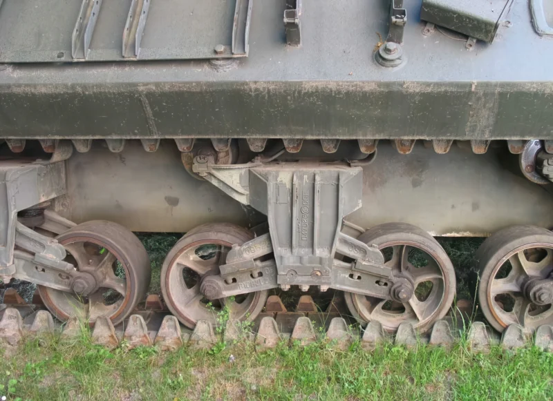 Suspension: Vertical Volute Spring Suspension (VVSS), inherited from the M4 Sherman design.