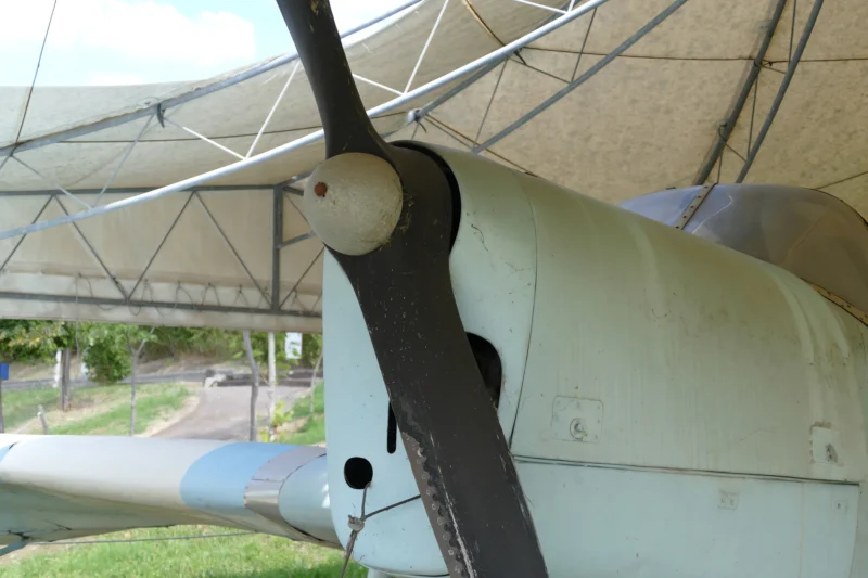 - Construction: Predominantly all-wood construction with fixed main landing gear wheels often covered by aerodynamic spats.