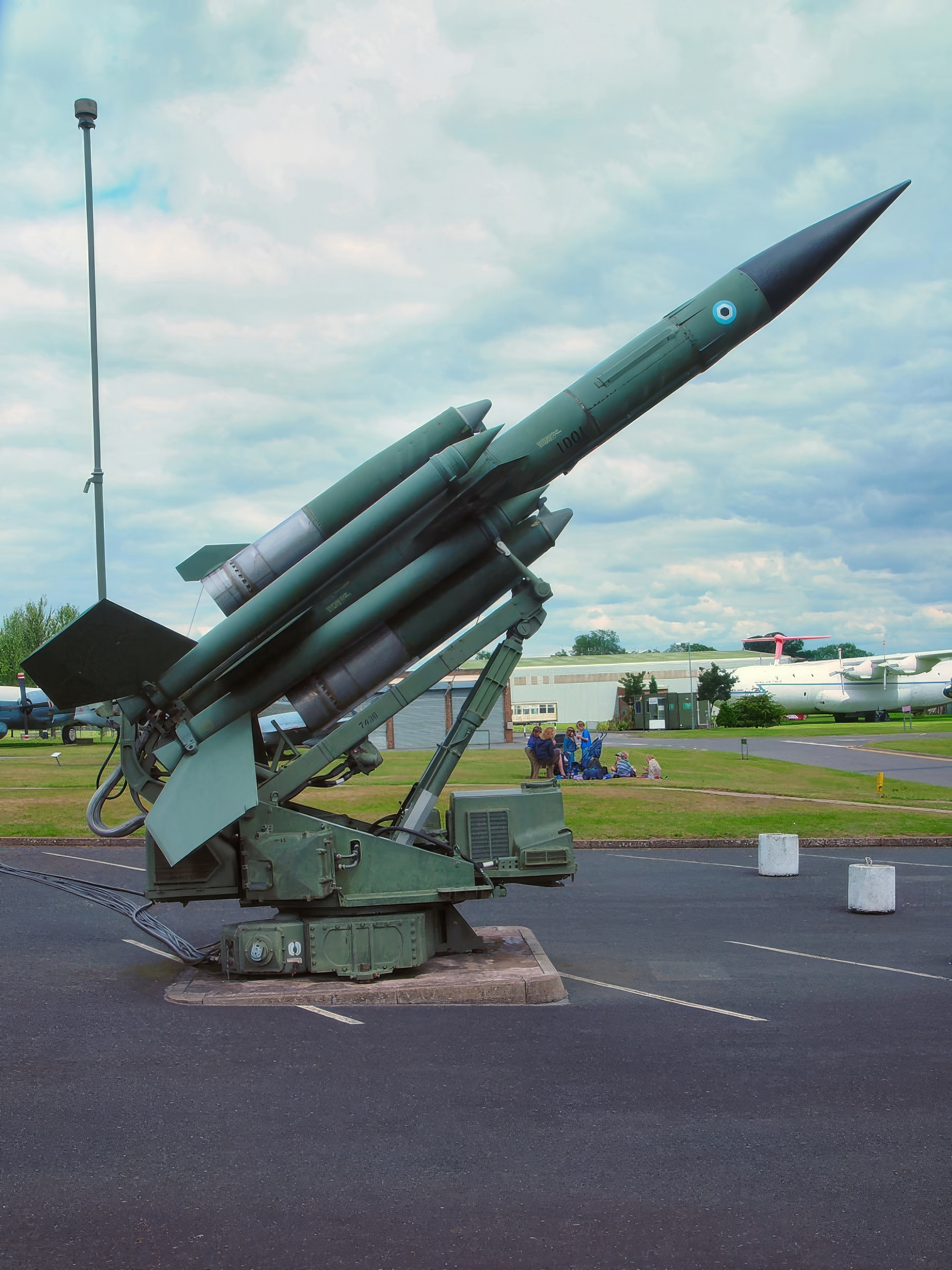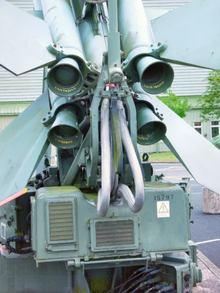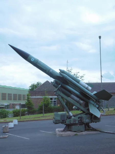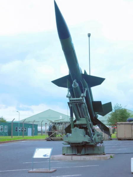 The Bristol Bloodhound was the United Kingdom’s first operational surface-to-air missile system, developed during the Cold War as a long-range defensive weapon. Known initially by the codename “Red Duster,” it was designed primarily to protect critical assets like Royal Air Force V bomber bases from high-flying Soviet nuclear bombers. The system evolved significantly from the Mk 1, which was vulnerable to jamming, to the much more capable Mk 2. The Mk 2 utilized advanced continuous-wave radar and more powerful ramjet engines, allowing it to engage targets at a wider range of altitudes, including low-level strikes, and remained a key part of UK air defenses until 1991.