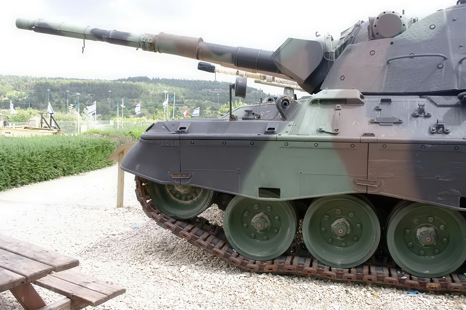 첫 번째 일괄 처리가 전달된 후 다음 세 배치는 레오파드 1A1model, which included a new gun stabilization system from Cadillac-Gage, allowing the tank to fire effectively on the move. The 1A1 also added the now-famous “skirts” along the sides to protect the upper tracks, and a new thermal jacket on the gun barrel to control heating. A less important change was to use rectangular rubber blocks fastened to the treads with a single pin instead of the earlier two-pin “shaped” versions. The rubber blocks could be easily replaced with metal X-shaped crampons for movement on ice and snow in the winter.