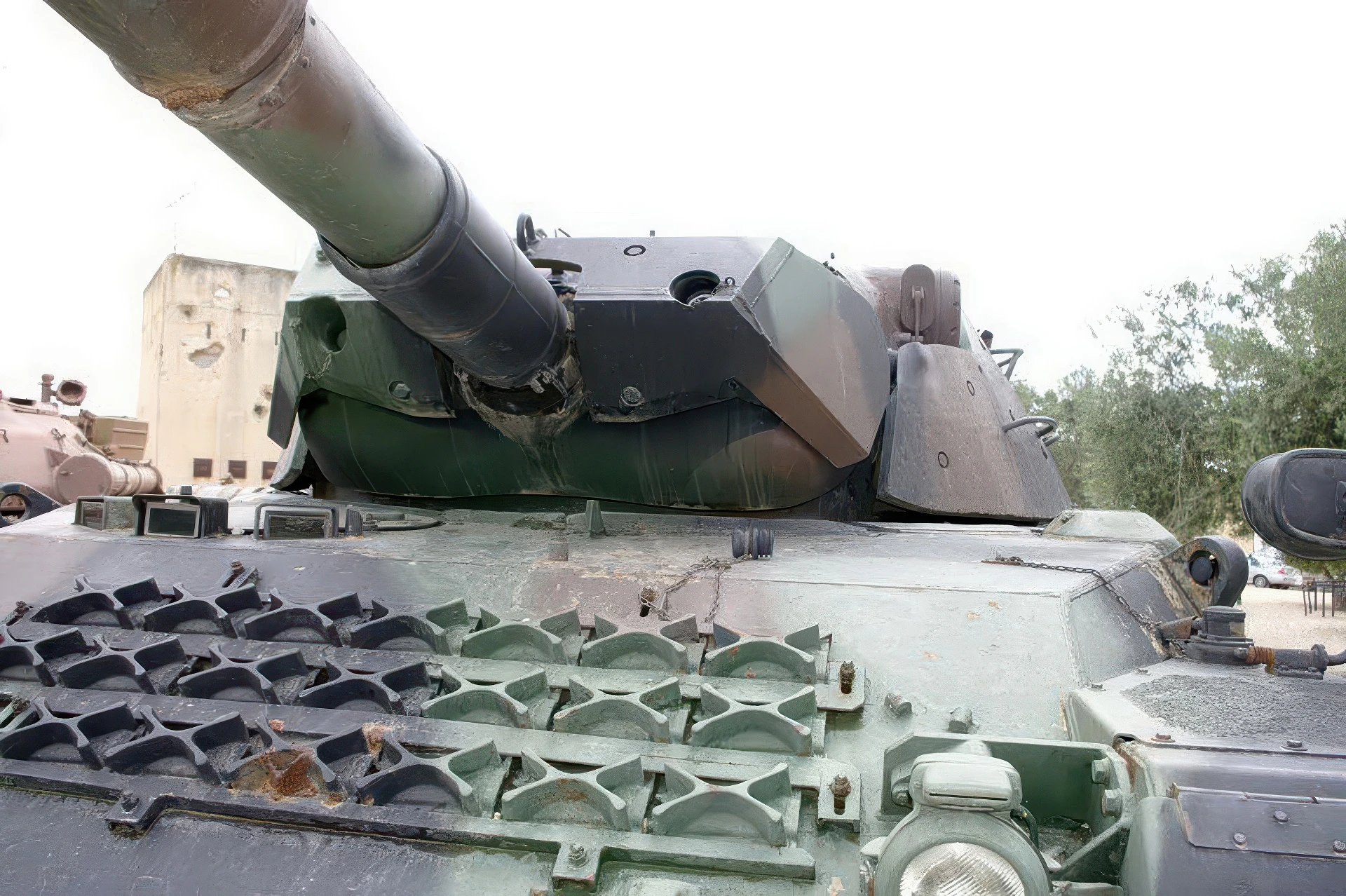 Side Skirts (Schürzen):The 1A1 introduced the distinctive rubber-reinforced side skirts. These were designed to disrupt the jet of a HEAT (High-Explosive Anti-Tank) round or an RPG before it hit the main hull, providing extra protection without the weight of heavy steel.