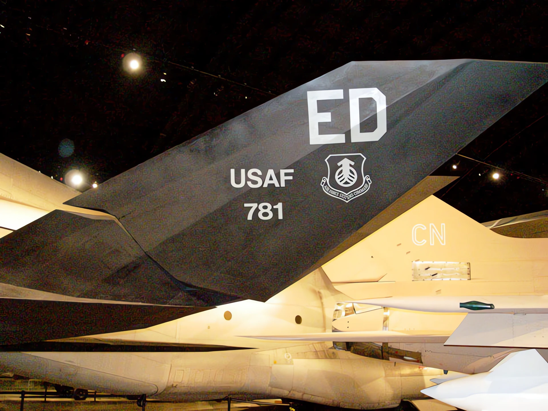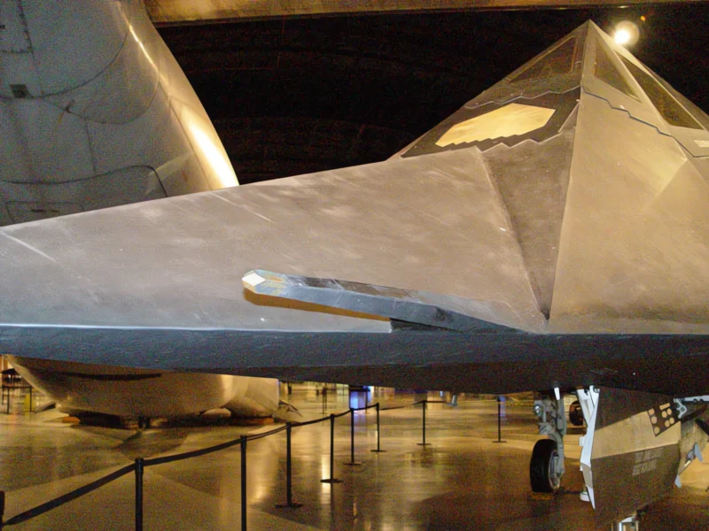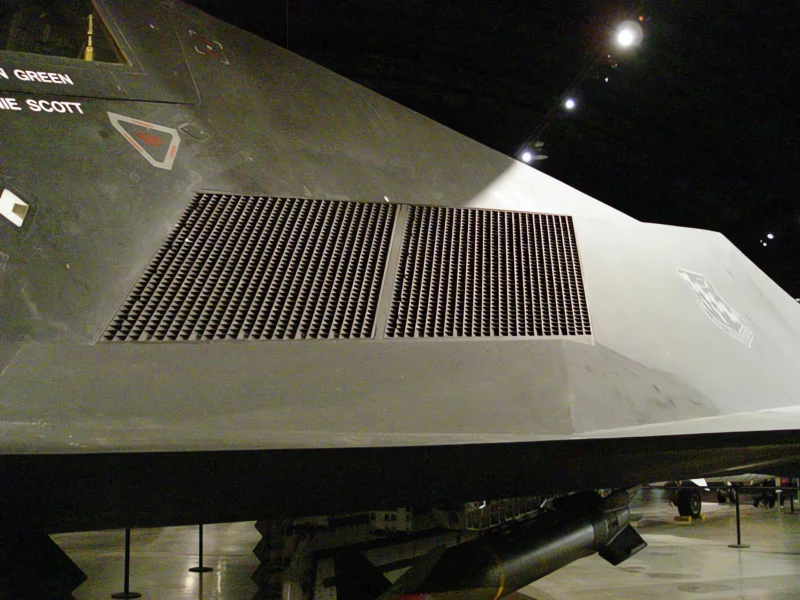 Hidden Inlets and Exhaust:The engine intakes were covered with grids (screens) to prevent radar from reaching the compressor blades. The exhaust was vented through wide, flat “platypus” nozzles to quickly mix hot gases with cool air, reducing its infrared signature.