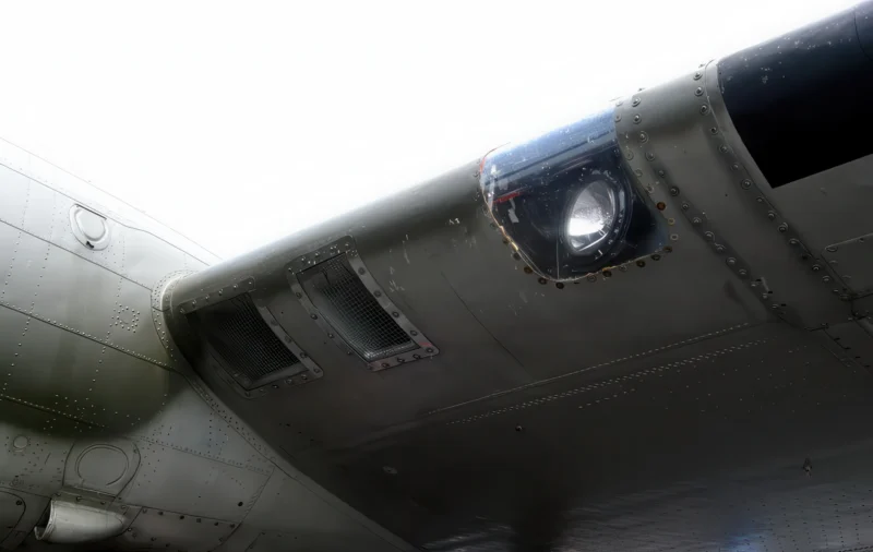 - Staggered Waist Guns: Gun positions in the fuselage were staggered (one forward, one aft) to give the two gunners more working room.