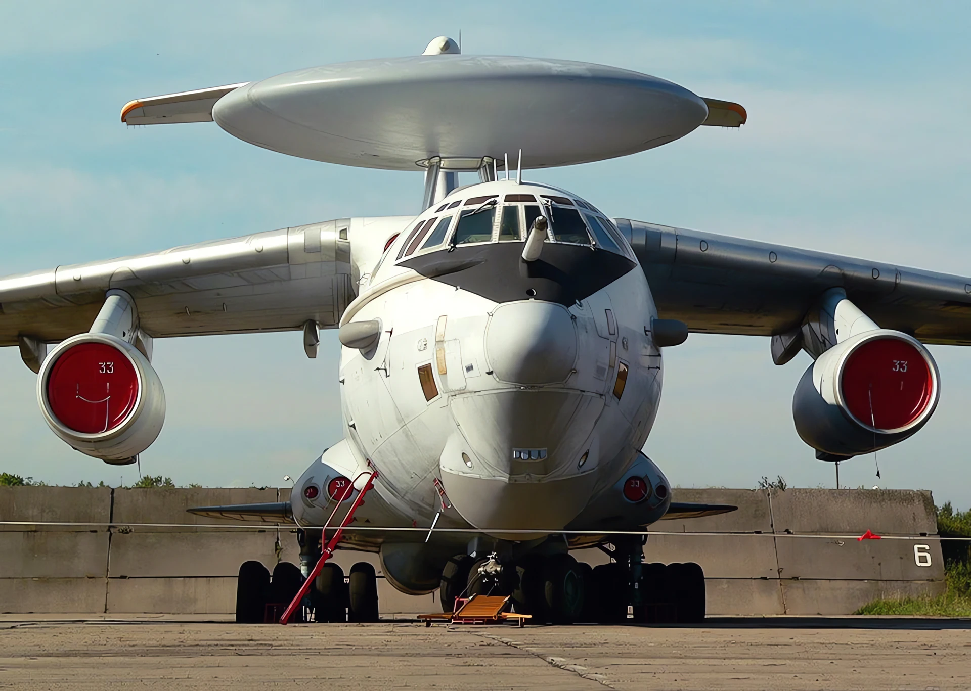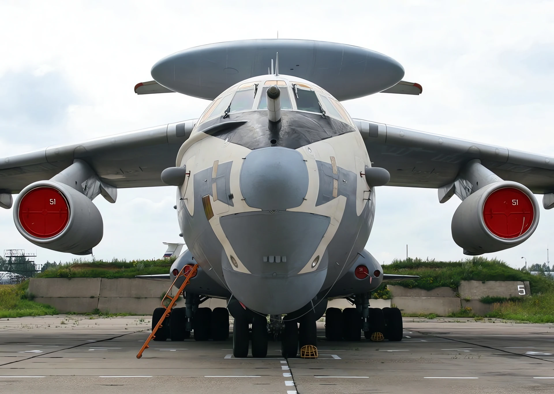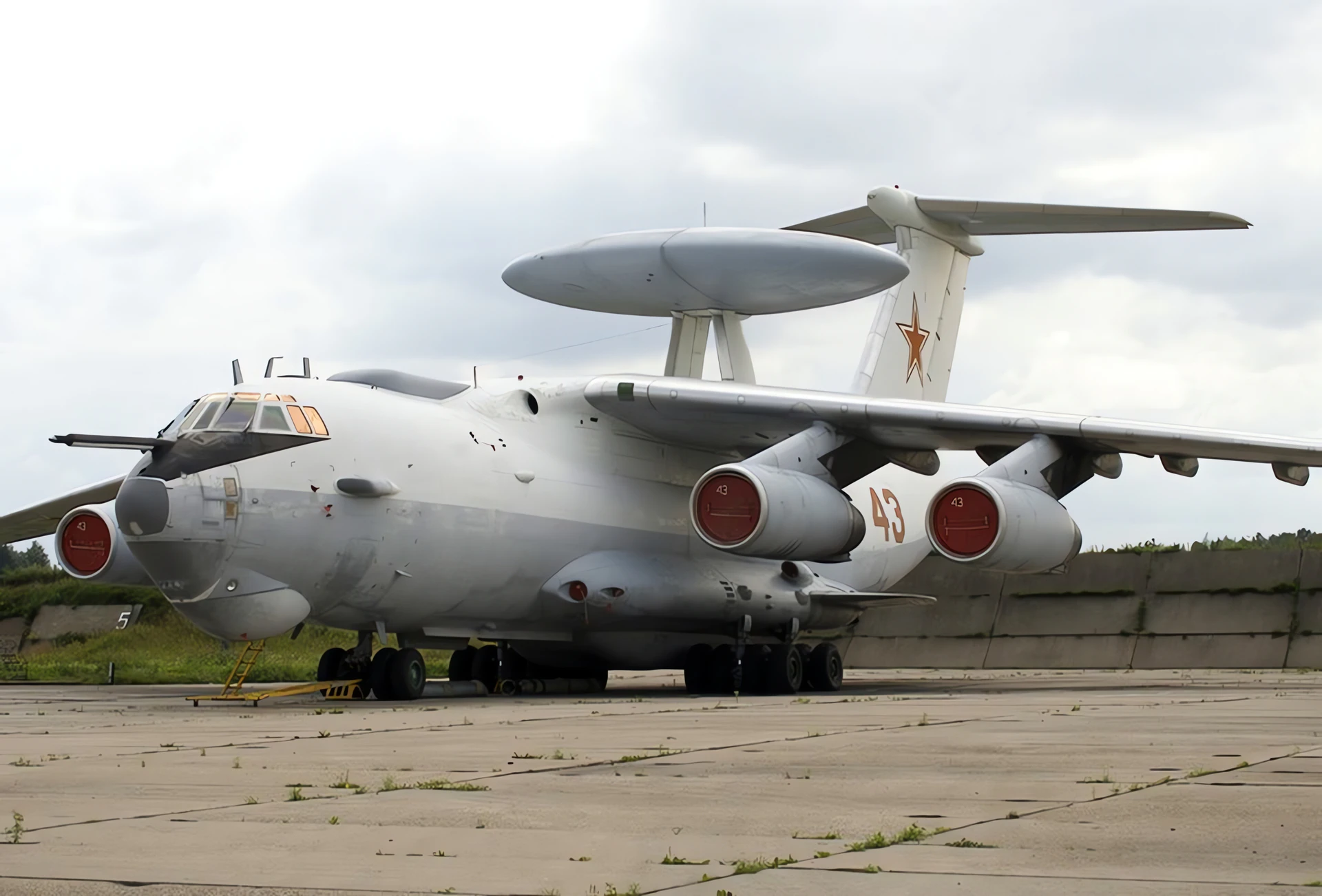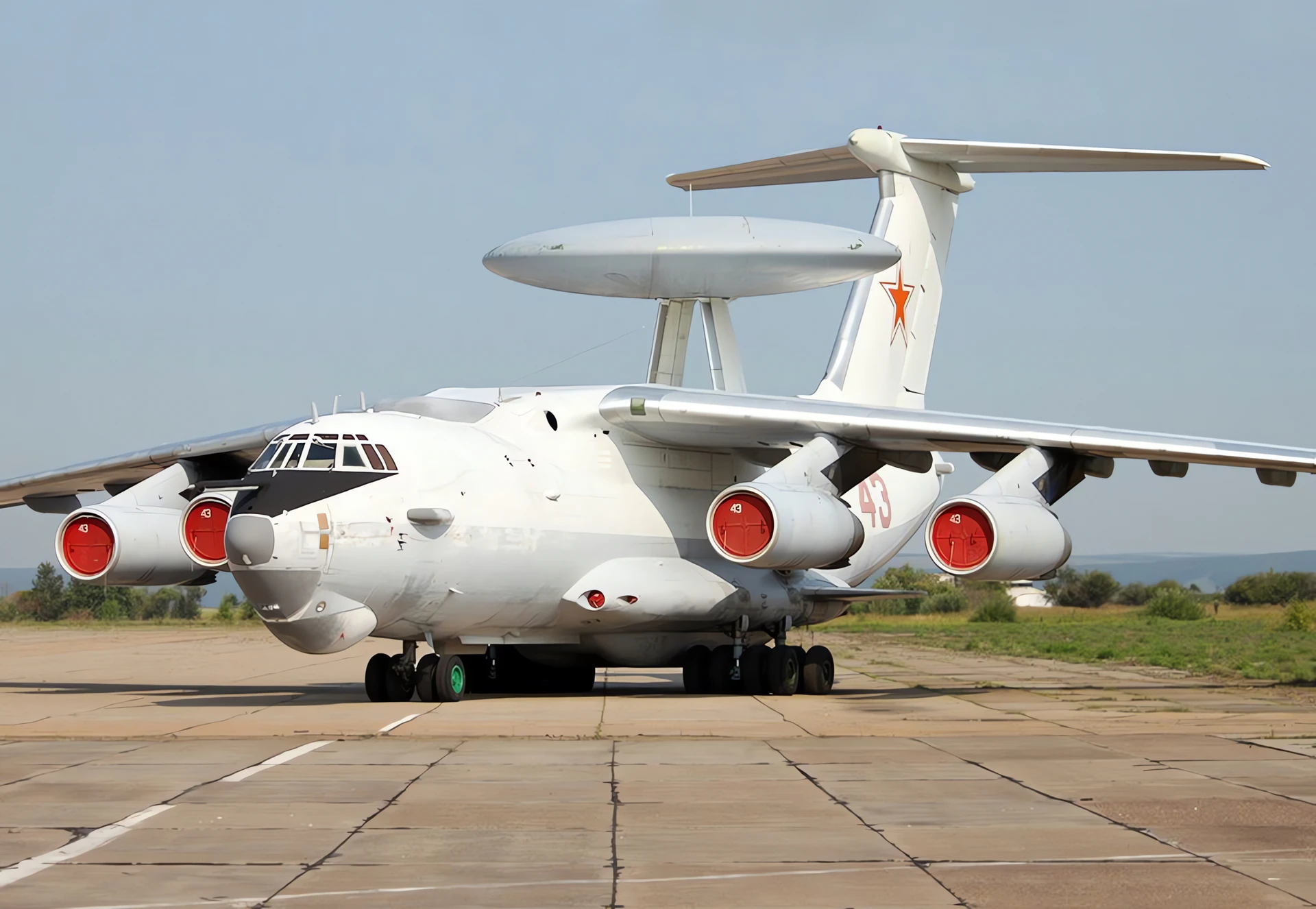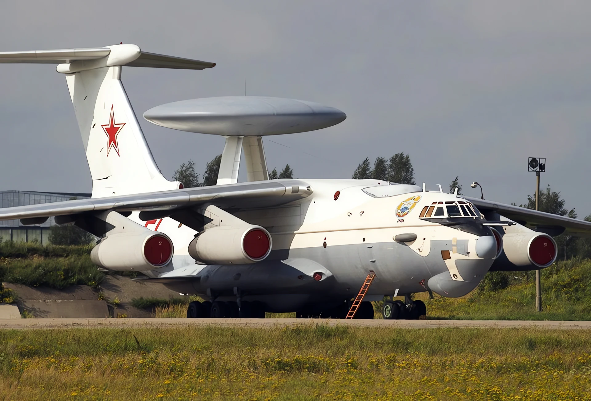 The Beriev A-50 (NATO reporting name: Mainstay) is a Soviet airborne early warning and control (AEW&C) aircraft based on the Ilyushin Il-76 transport. Developed to replace the Tupolev Tu-126 “Moss”, the A-50 first flew in 1978. Its existence was revealed to the Western Bloc in 1980 by Adolf Tolkachev. It entered service in 1984, with about 40 produced by 1992.