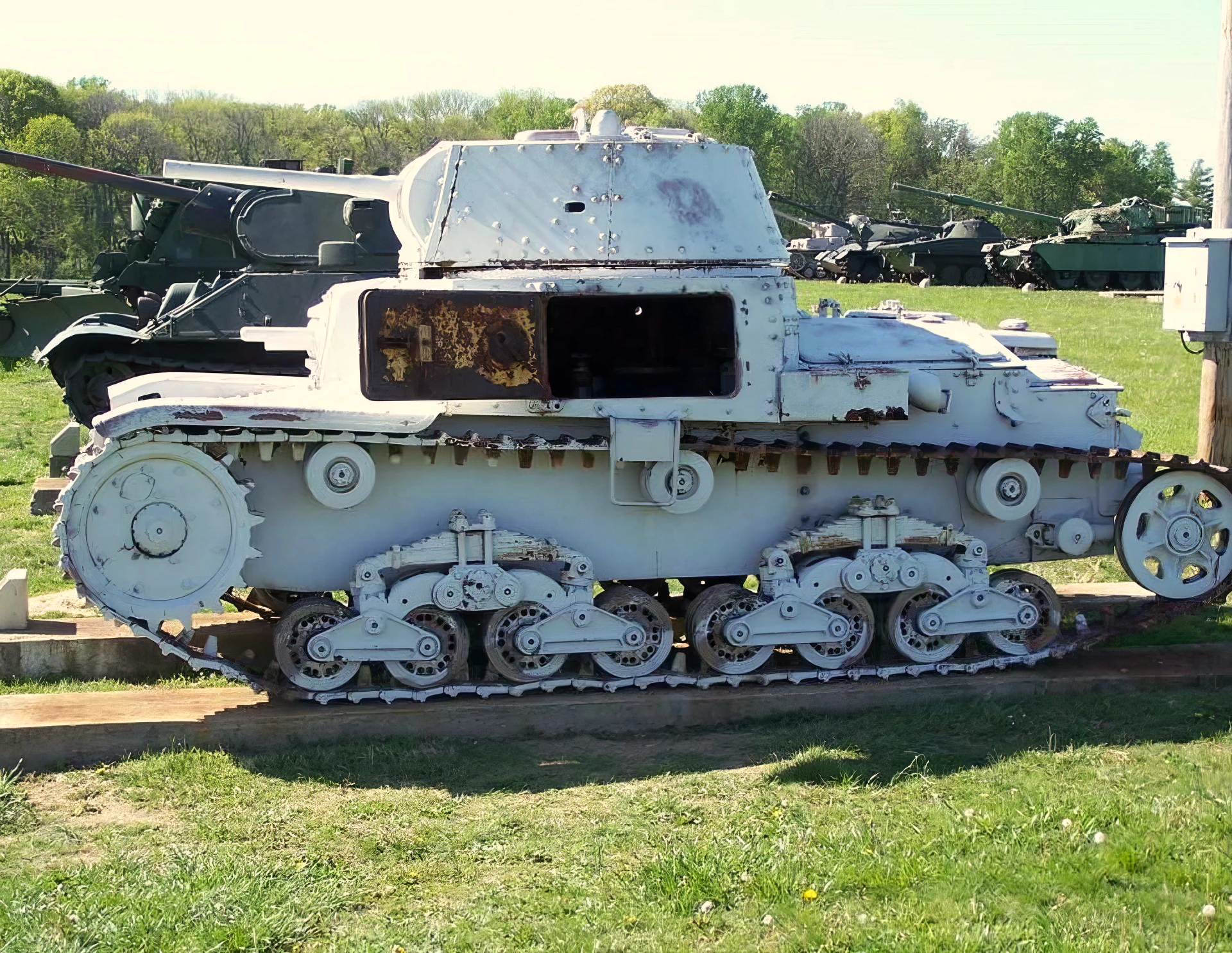- Suspension: Bogie system on leaf springs, which was outdated compared to the Christie or torsion bar systems used by other nations.