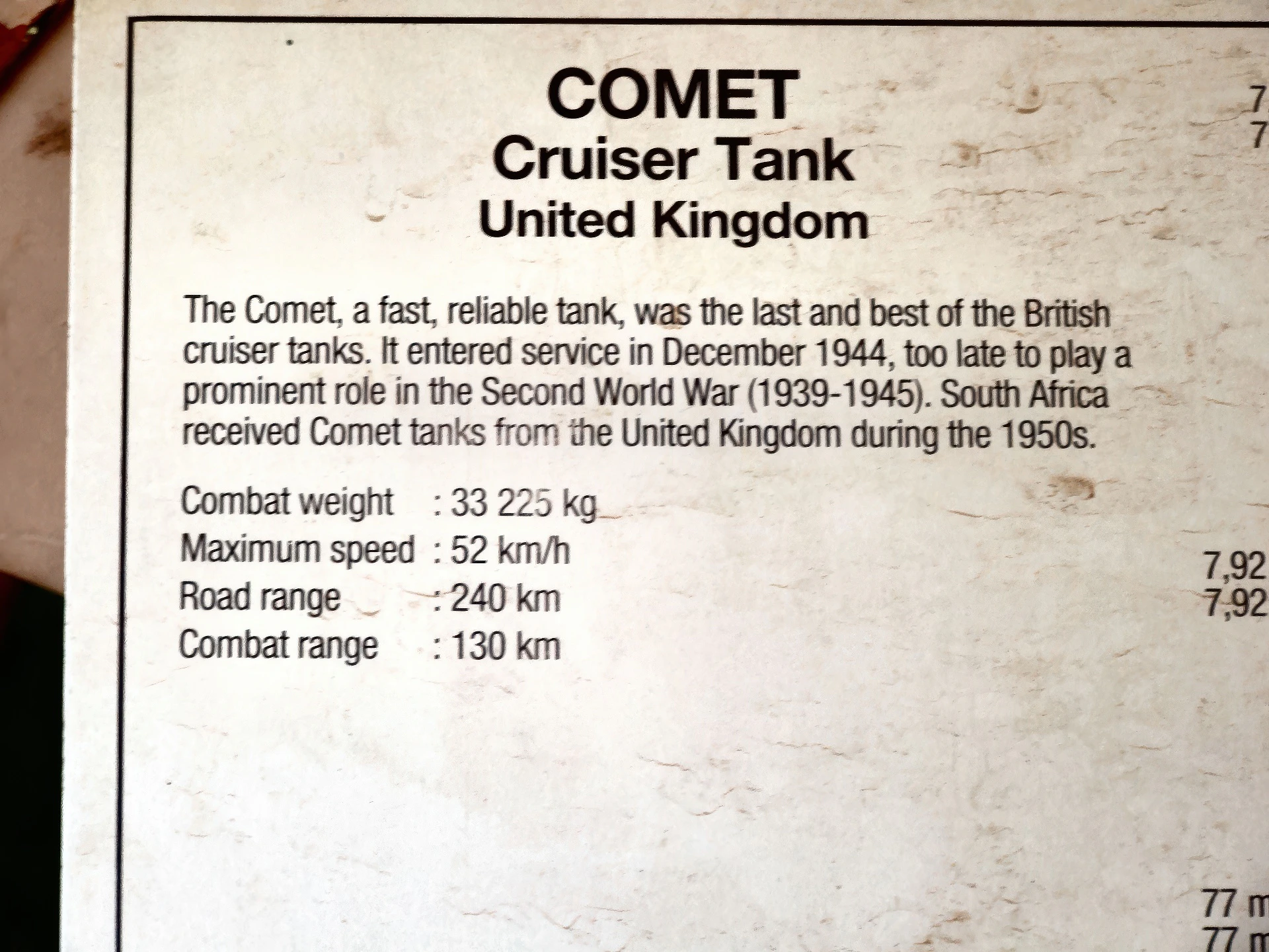 - Post-War Service: The Comet continued to serve with the British Army and many Commonwealth forces for years after WWII. It was used in conflicts such as the Korean War by British forces.