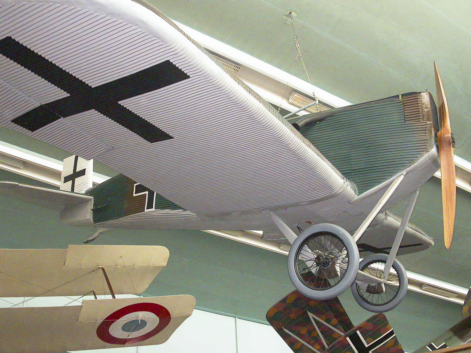 The Junkers J 9 (military designation D.I) was a German monoplane fighter aircraft produced late in World War I, notable for being the world’s first all-metal fighter to enter military service. Designed by Hugo Junkers, the aircraft featured a revolutionary cantilever wing and fuselage entirely covered in corrugated duralumin (an aluminum alloy). This construction method made the aircraft exceptionally durable and easy to maintain compared to conventional wood-and-fabric aircraft, though early models were criticized for low maneuverability. Only a small number of J 9s were delivered before the Armistice, primarily used by the Imperial German Navy for coastal defense and later by paramilitary Freikorps units after the war.