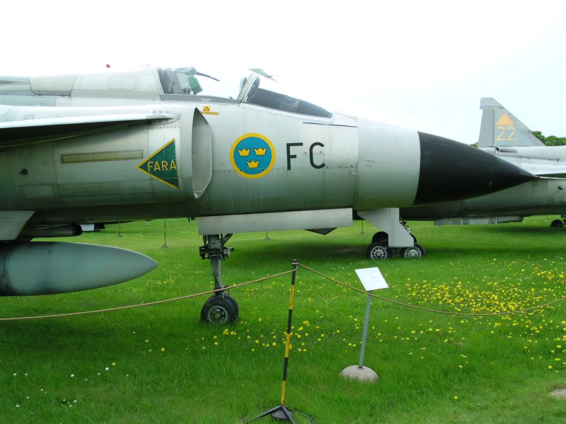 - The “Splinter” Camouflage: Perhaps the most iconic paint scheme in aviation history, the four-color “M90” splinter pattern was designed to hide the aircraft against the Swedish forests when viewed from above by Soviet satellites or aircraft.