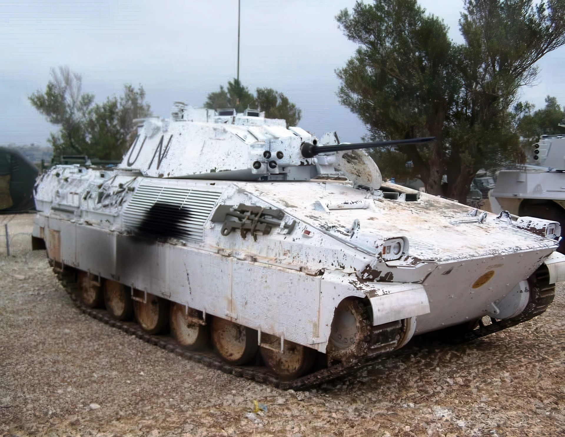 - Protection: Welded aluminum alloy hull with add-on steel armor plates. Frontal arc protection is against 25 mm APDS rounds.
