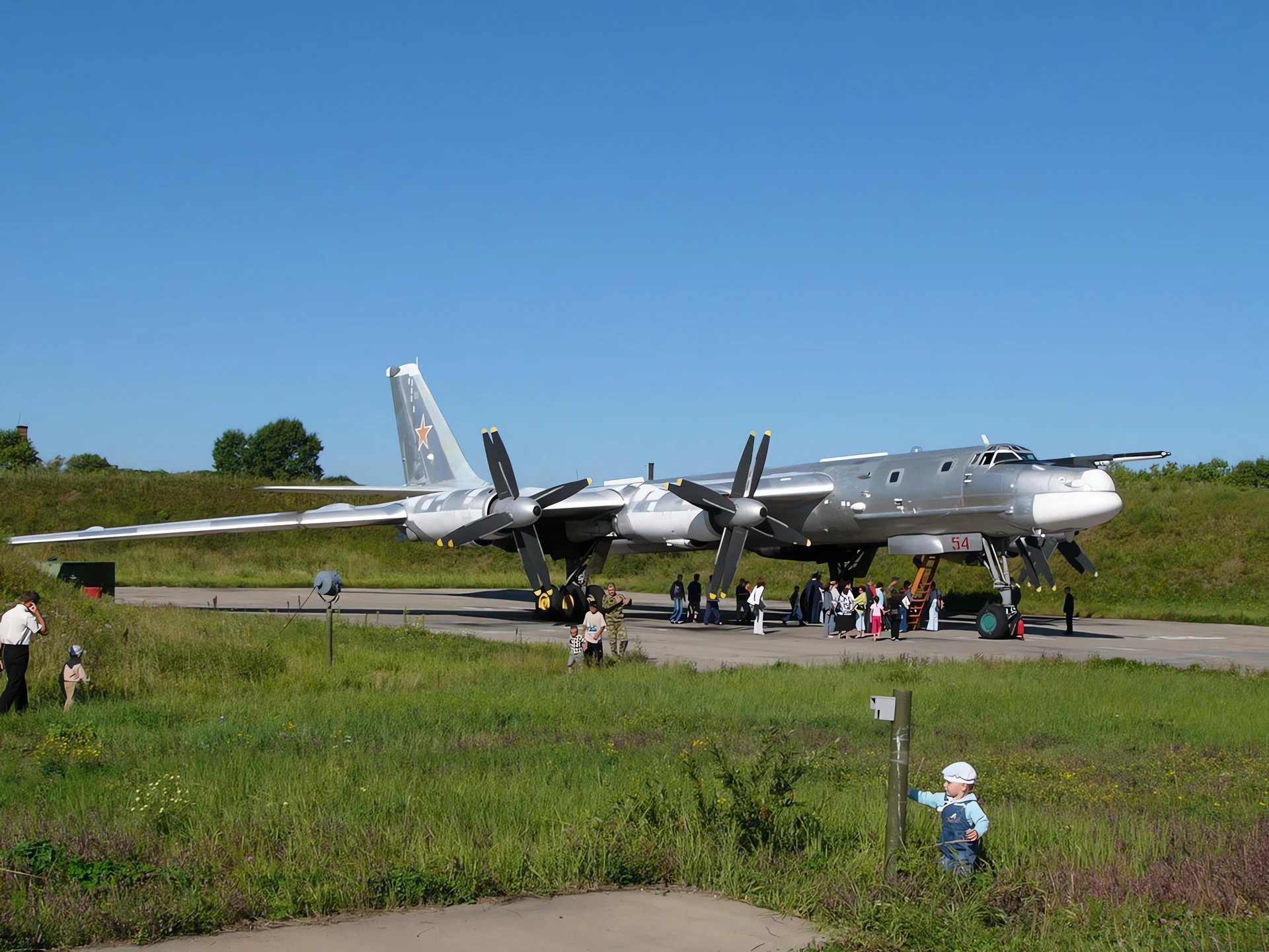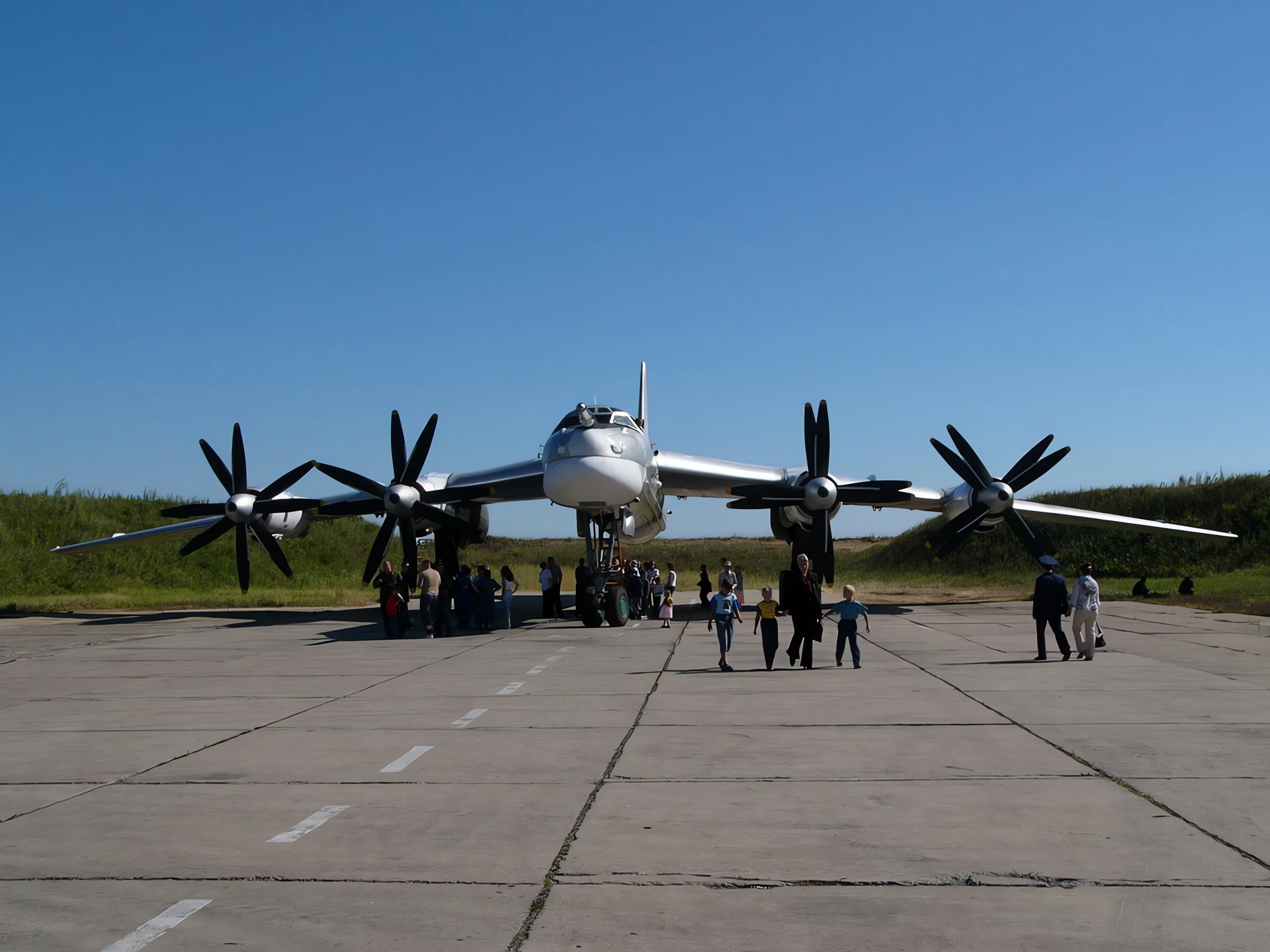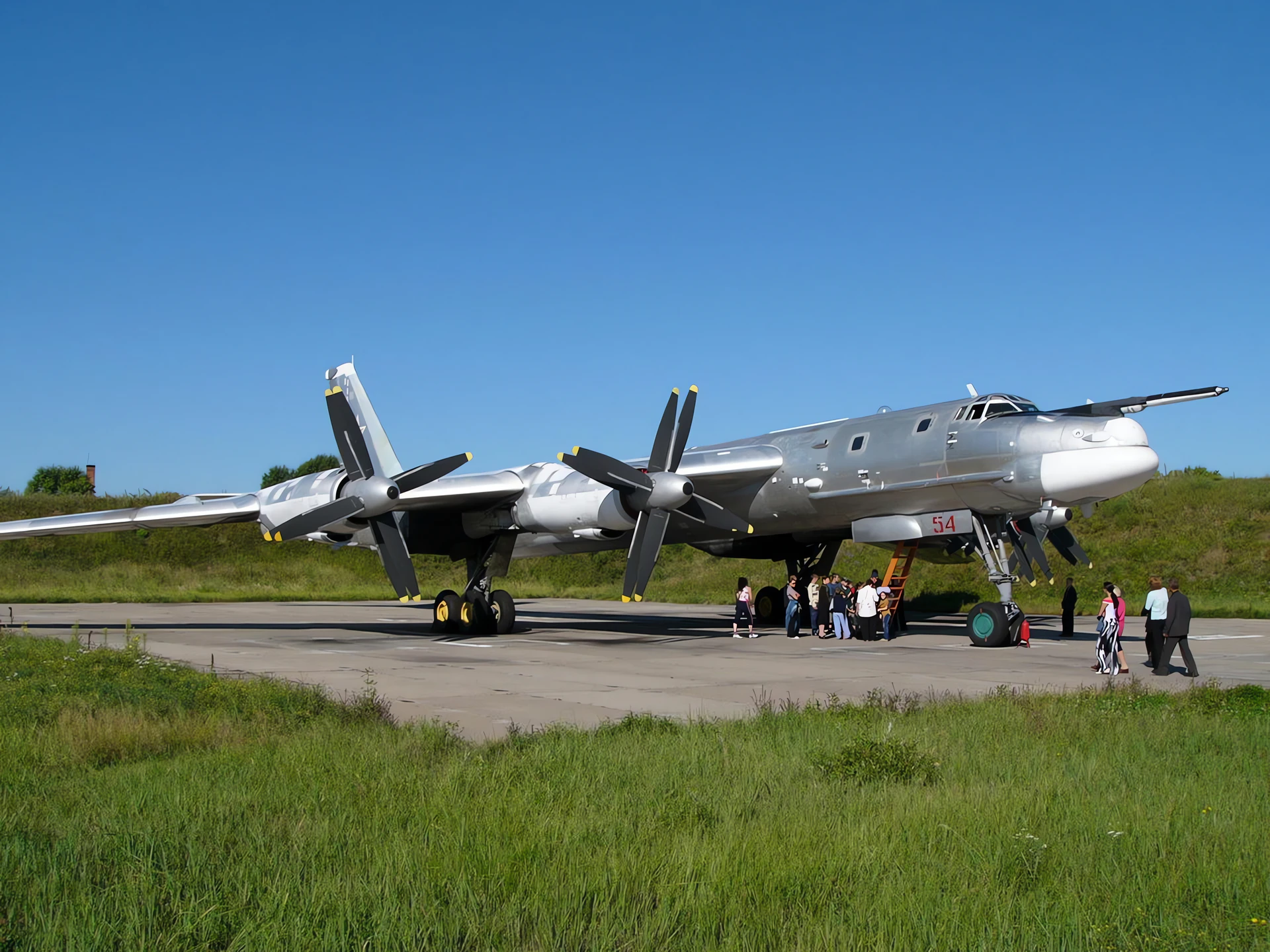 Фотогалерея Туполев Ту-95МС Медведь, The Tupolev Tu-95 (Russian: Туполев Ту-95; NATO reporting name: “Bear”) is a large, four-engine turboprop-powered strategic bomber and missile platform. First flown in 1952, the Tu-95 entered service with the Soviet Union in 1956 and is expected to serve the Russian Air Force until at least 2040.[1] A development of the bomber for maritime patrol is designated Tu-142, while a passenger airliner derivative was called Tu-114.